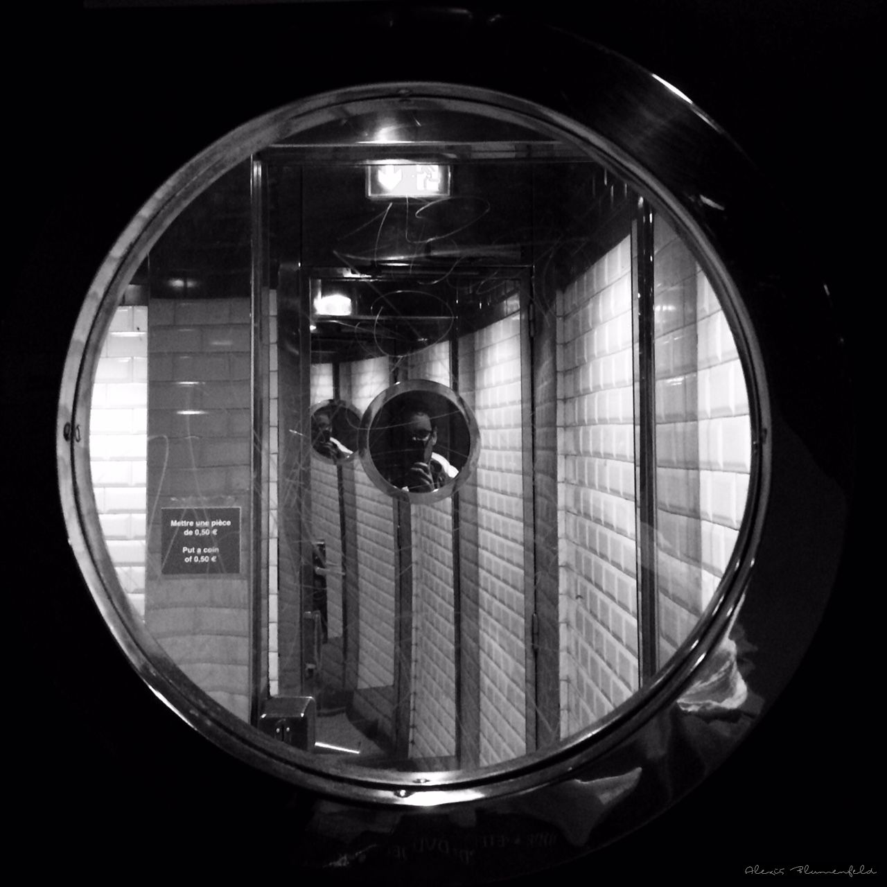 Mini-autoportrait Dans un café parisien, je descends aux toilettes et je découvre cette porte au hublot qui me donne une idée… { Iphone 5s } Nombre de vues : 1 192